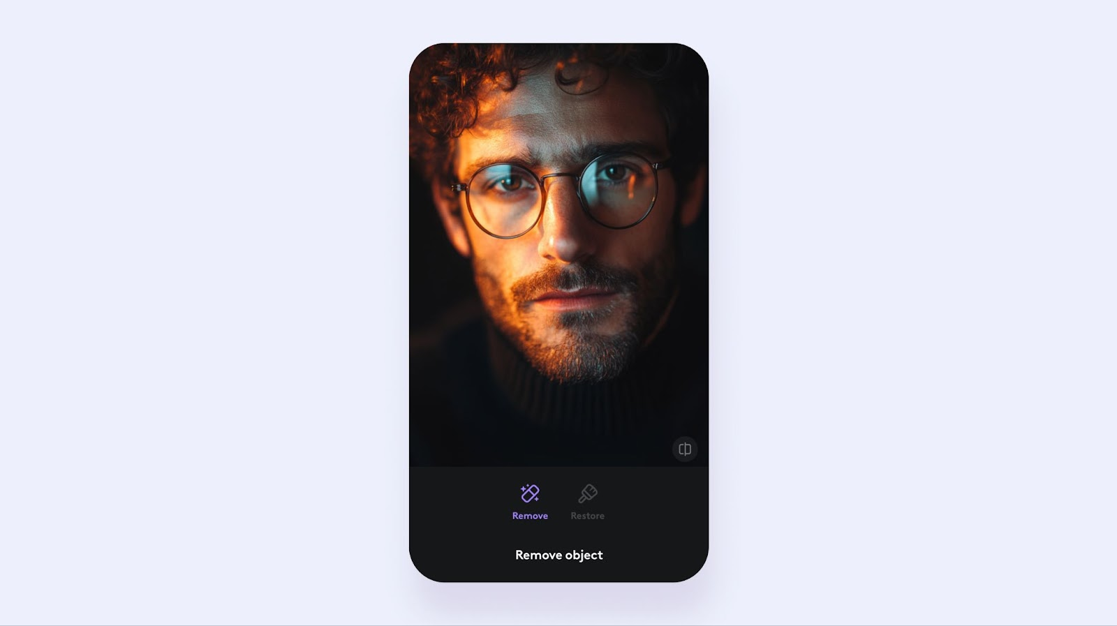 Glasses can be particularly problematic when it comes to glare. The reflective surfaces of lenses often catch light, creating distracting bright spots in portraits. Here's how you can address this issue using Photoleap: