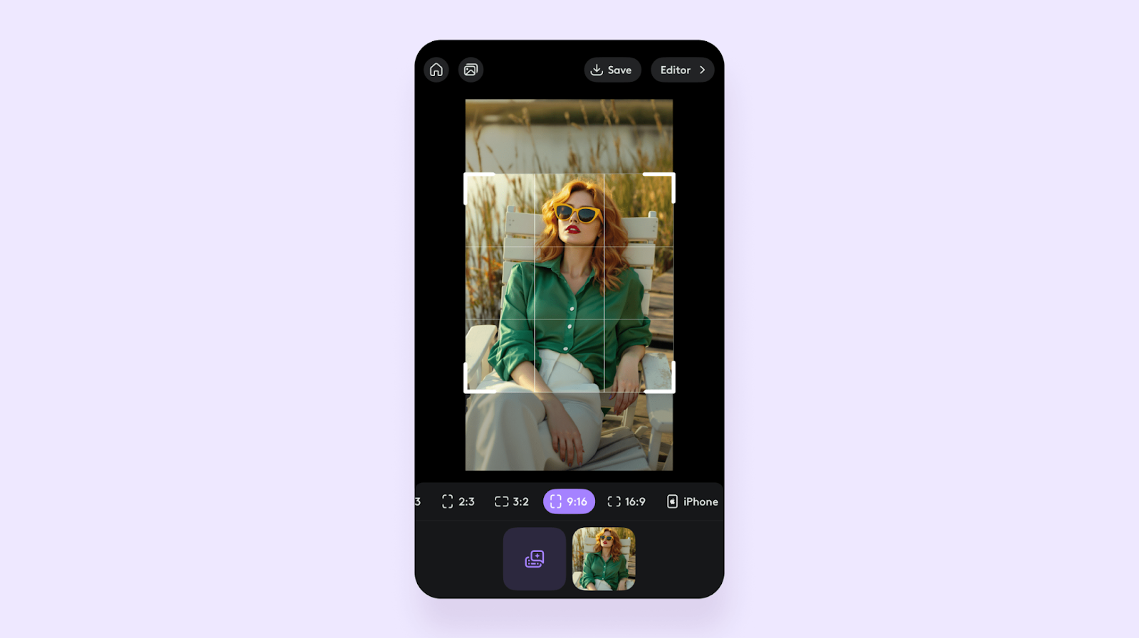 - Choose from popular preset ratios (1:1, 4:5, 5:4, etc.)